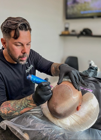 I embarked on my Scalp Micropigmentation journey with a desire to help individuals struggling with hair loss and low confidence associated with pattern balding. I am driven by the transformative impact that my skills and treatments have on my clients' self-esteem through SMP. I possess a strong background in the tattoo industry since 2007, owning, operating and managing three successful studios filled with 30+ amazing artists and staff members. I ventured into SMP in 2020, completing multiple comprehensive training courses throughout North America. Today, I offer my own SMP certified training courses and have expanded to two locations, in both of Alberta's largest cities, Edmonton and Calgary. I maintain the highest standards of sterilization, safety, and cleanliness, while ensuring top-quality results with meticulous attention to detail. I specialize in a variety of men's hairlines and sincerely look forward to helping clients who suffer from alopecia, specifically trichotillomania. Committed to continuous learning and improvement, I regularly test new products and equipment and seek out advancements in application and emerging techniques to provide the best possible service and results. I look forward to helping you with your hair loss issues.